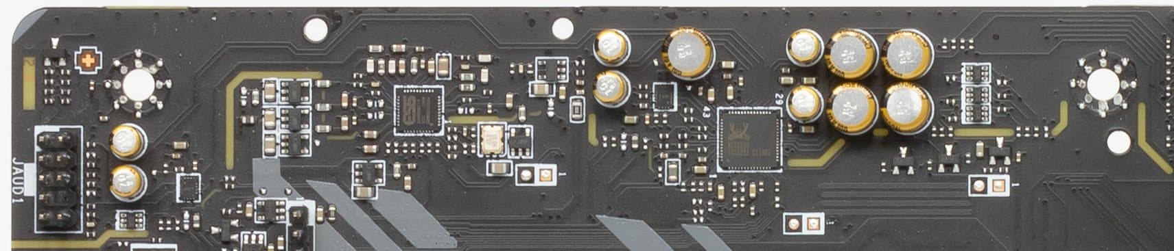 В аудиоцепях платы применяются «аудиофильские» конденсаторы Nippon Chemicon.