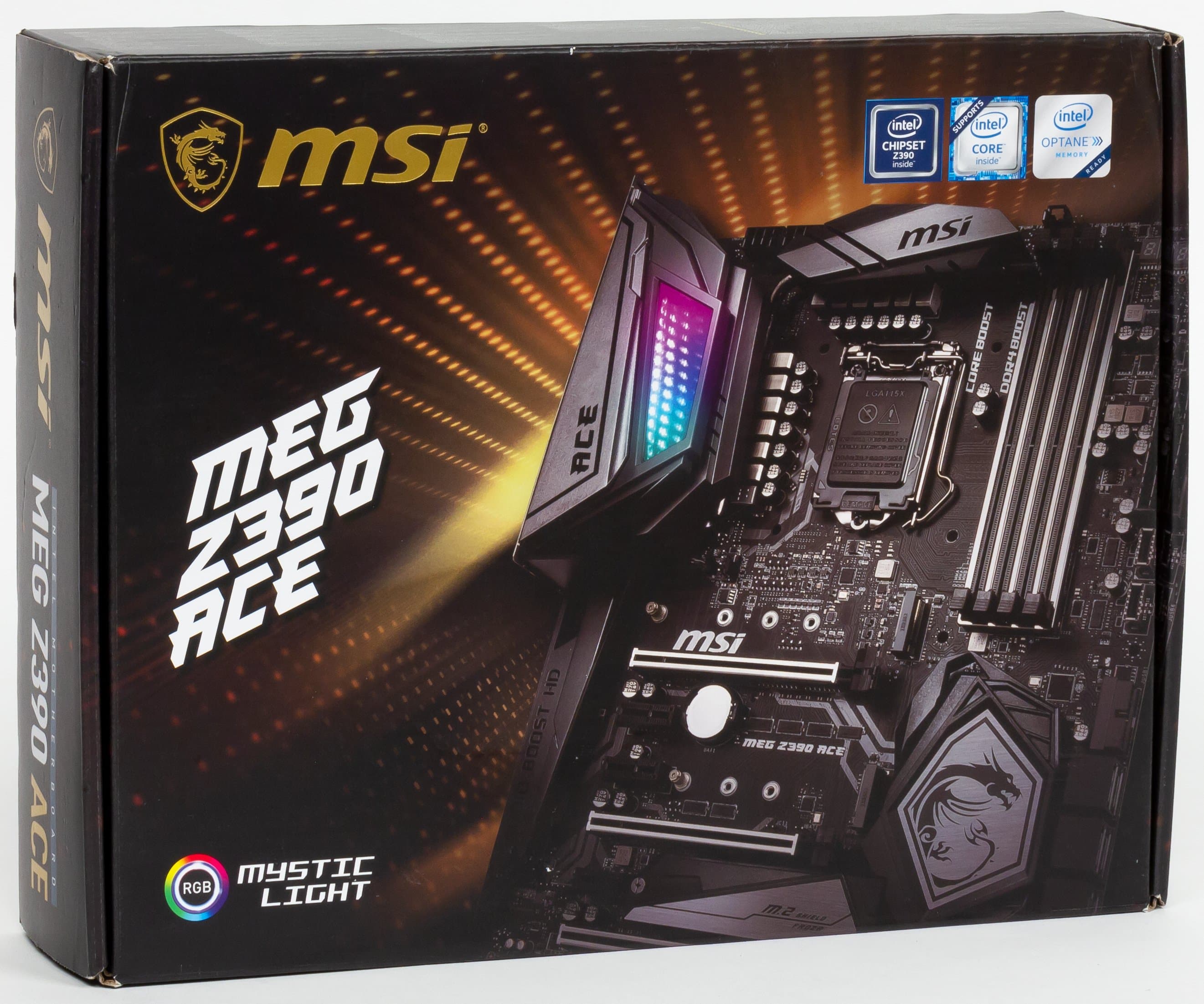 MSI MEG Z390 Ace поставляется в большой, но обычной коробке без излишеств..