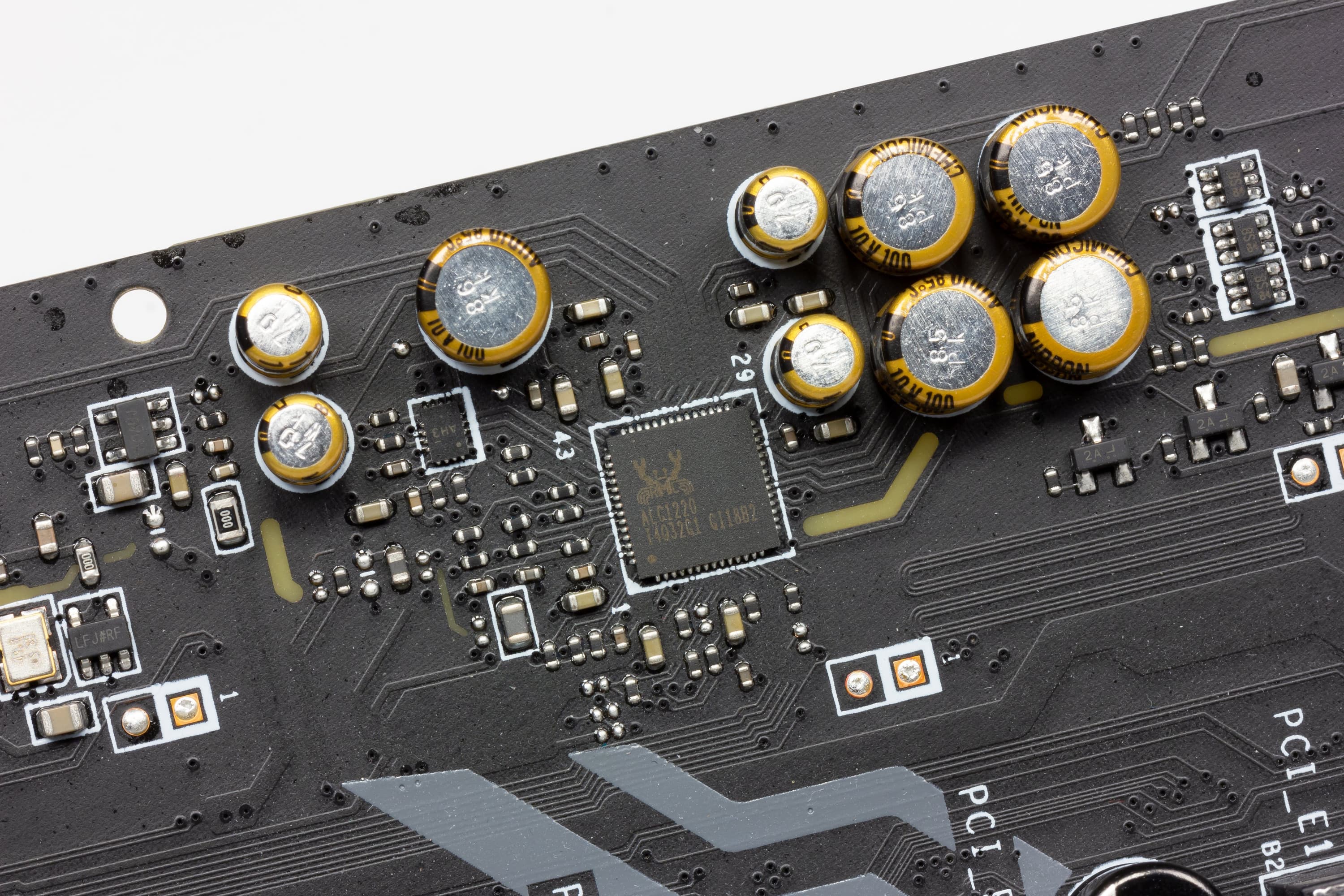 Как и практически во всех современных материнских платах, звуком заведует аудиокодек Realtek ALC1220. Он обеспечивает вывод звука по схемам до 7.1.