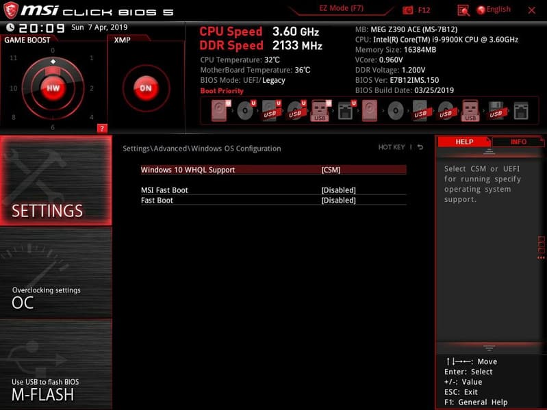 MSI Fast boot следует включать, если уже отлажены все настройки, чтобы при следующей перезагрузке UEFI не опрашивал все и вся заново, а брал ранее установленные настройки, что ускоряет запуск компа.
