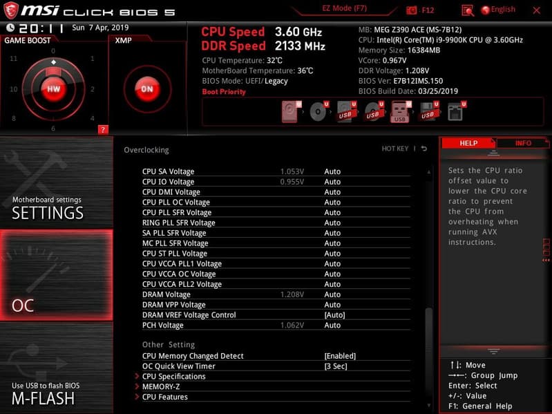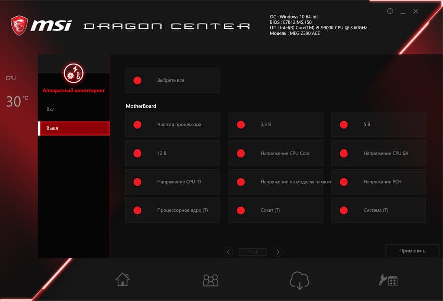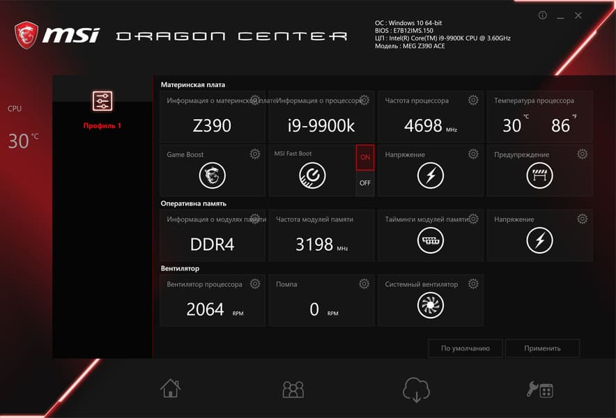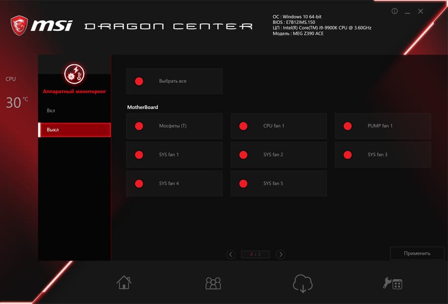 Так что возможности MSI MEG Z390 Ace в плане охлаждения — просто супер! Да и плане мониторинга все отлично. Все вентиляторы могут управляться как через ШИМ, так и банальным изменением напряжения/тока. Для этого можно воспользоваться как настройками UEFI/BIOS, так и ПО.