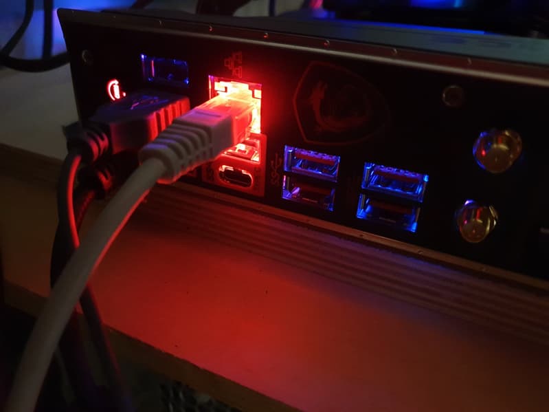 - 6 портов USB 3.1 Gen2 (самые быстрые на сегодня): все реализованы через Z390 и представлены 4 портами Type-A (красного цвета) на задней панели и 2 внутренними портами Type-C (для подключения таких же разъемов на передней панели корпуса);
