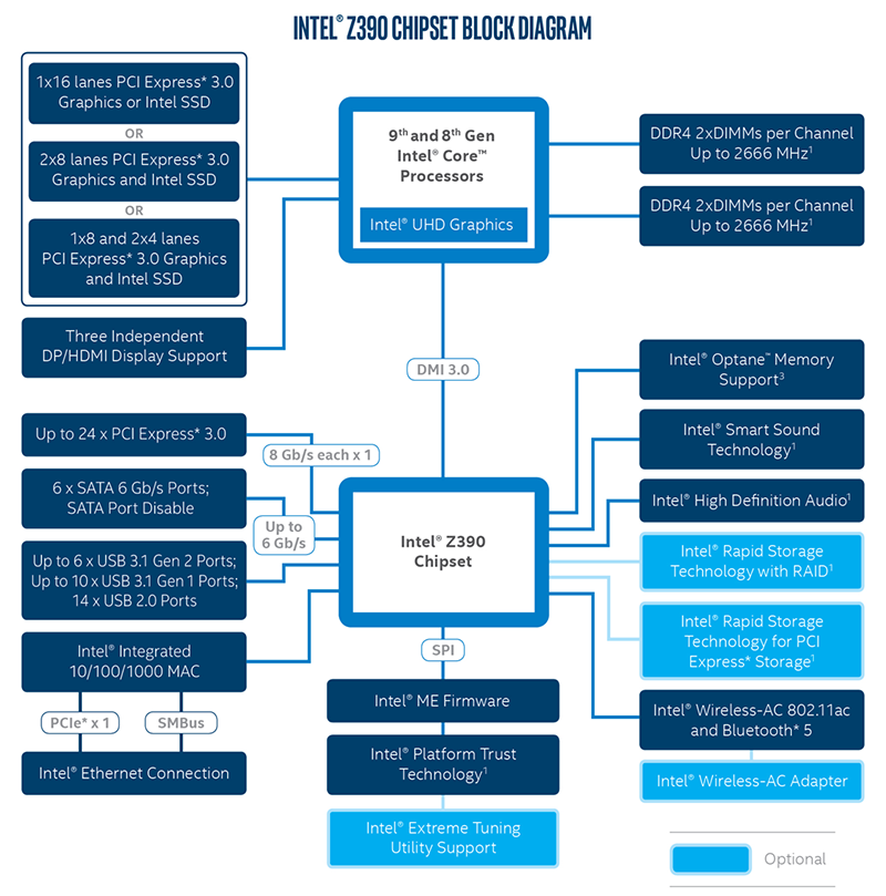 Начнем с чипсета Z390 и его взаимодействия с процессором.
