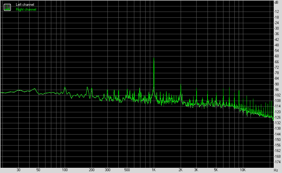 Для тестирования выходного звукового тракта, предназначенного для подключения наушников или внешней акустики, мы использовали внешнюю звуковую карту Creative E-MU 0202 USB в сочетании с утилитой RightMark Audio Analyzer 6.4.5. Тестирование проводилось для режима стерео, 24-бит/44,1 кГц. По результатам тестирования аудиотракт на плате получил оценку «Хорошо».