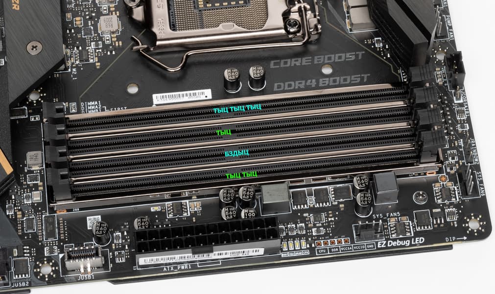 | Память | 4 × DDR4, до 128 ГБ, до DDR4-4800 (XMP), два канала |