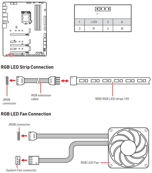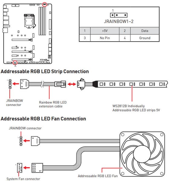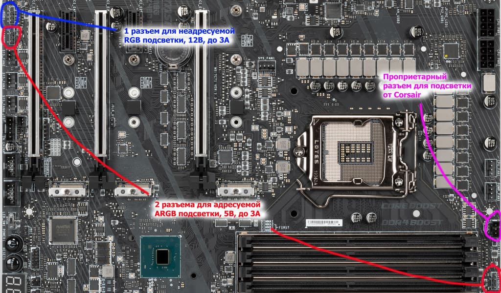 Схемы подключения стандартны для всех материнских плат, поддерживающих подсветку: