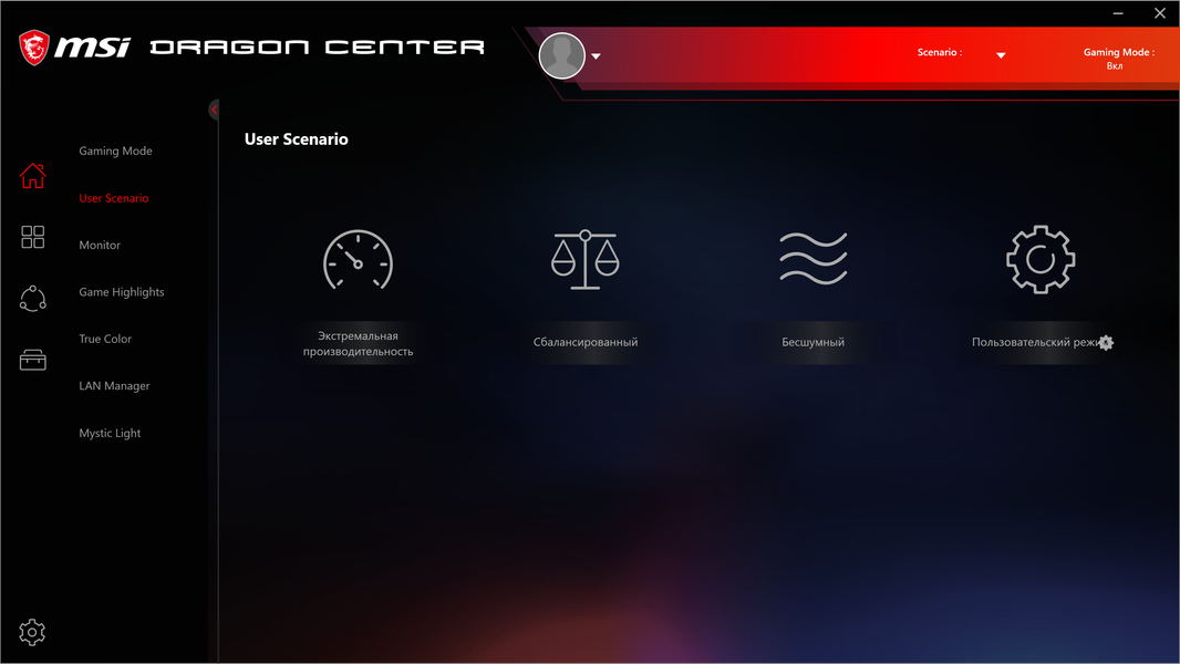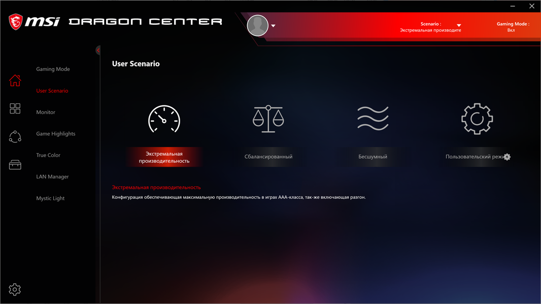 Далее использовал фирменную утилиту Dragon Center для получения более высоких результатов, выставив там режим экстремальной производительности.
