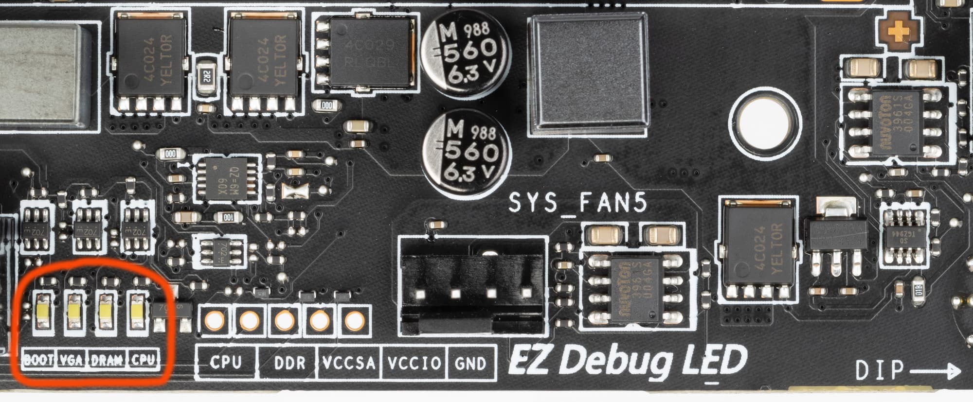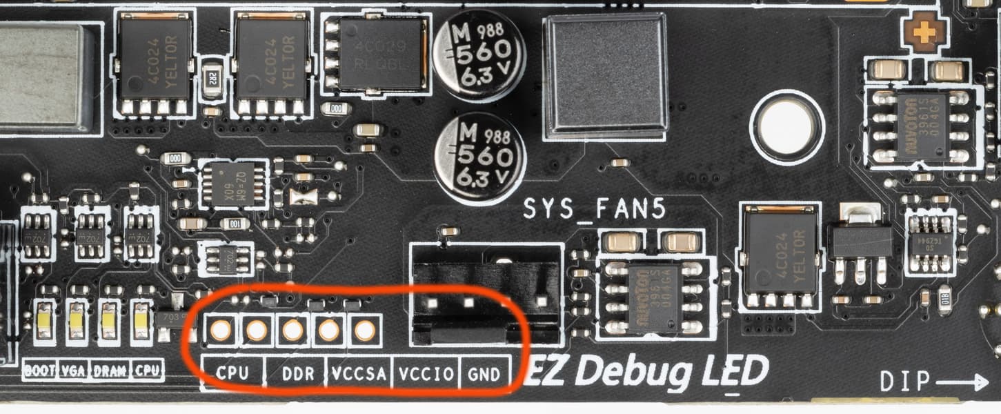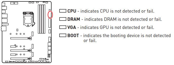 У платы еще есть световые индикаторы, сообщающие о проблемах с тем или иным компонентом системы.