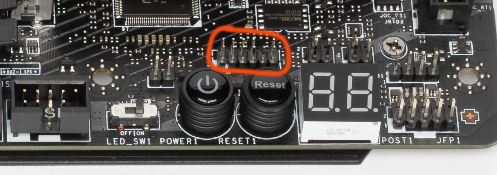 Разумеется, есть и традиционный набор штырьков FPanel для подключения проводов к передней (а сейчас уже часто и верхней или боковой или все это сразу) панели корпуса.