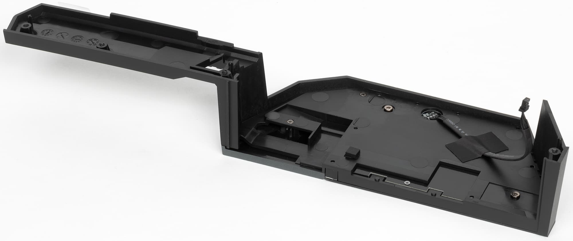 Над аудиоподсистемой и задним блоком портов установлен пластиковый кожух соответствующего дизайна, он оснащен подсветкой.