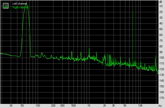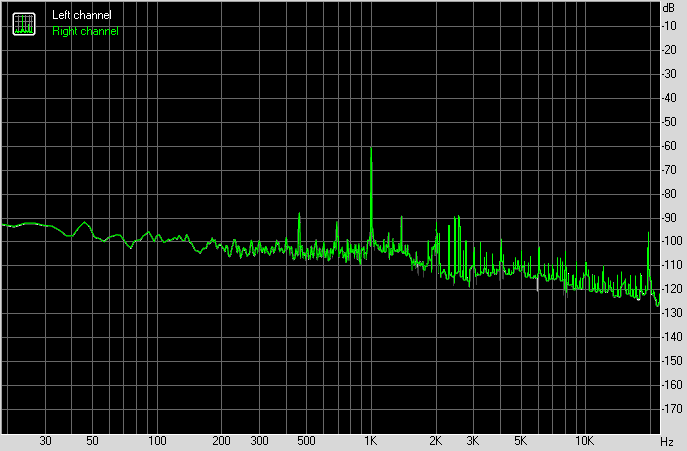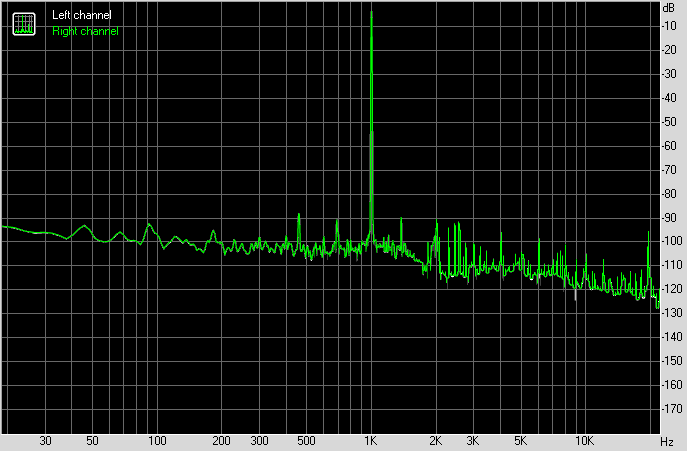 Для тестирования выходного звукового тракта, предназначенного для подключения наушников или внешней акустики, мы использовали внешнюю звуковую карту Creative E-MU 0202 USB в сочетании с утилитой RightMark Audio Analyzer 6.4.5. Тестирование проводилось для режима стерео, 24-бит/44,1 кГц. Во время тестирования ИБП тестового ПК физически отключался от электросети и работал на аккумуляторе.