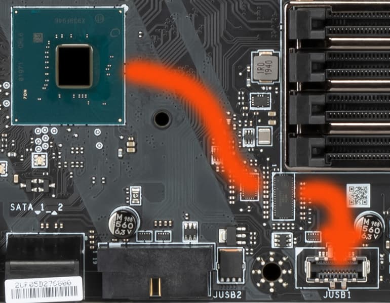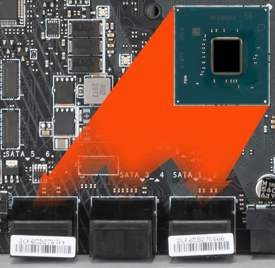 - Переключатель: или порты SATA_5/6 (2 линии), или слот M.2_2 (4 линии): максимум 4 линии;