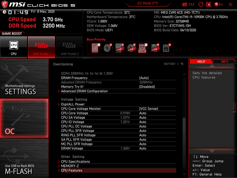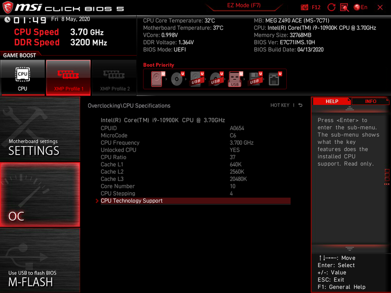 Еще раз надо напомнить, что MSI MEG Z490 Ace поддерживает процессоры Intel Core 10-го поколения, выполненные под разъем (сокет) LGA1200. Система крепления систем охлаждения для CPU точно такая же, как и для LGA1151 (поэтому нет нужды волноваться, что прежние кулеры не подойдут).