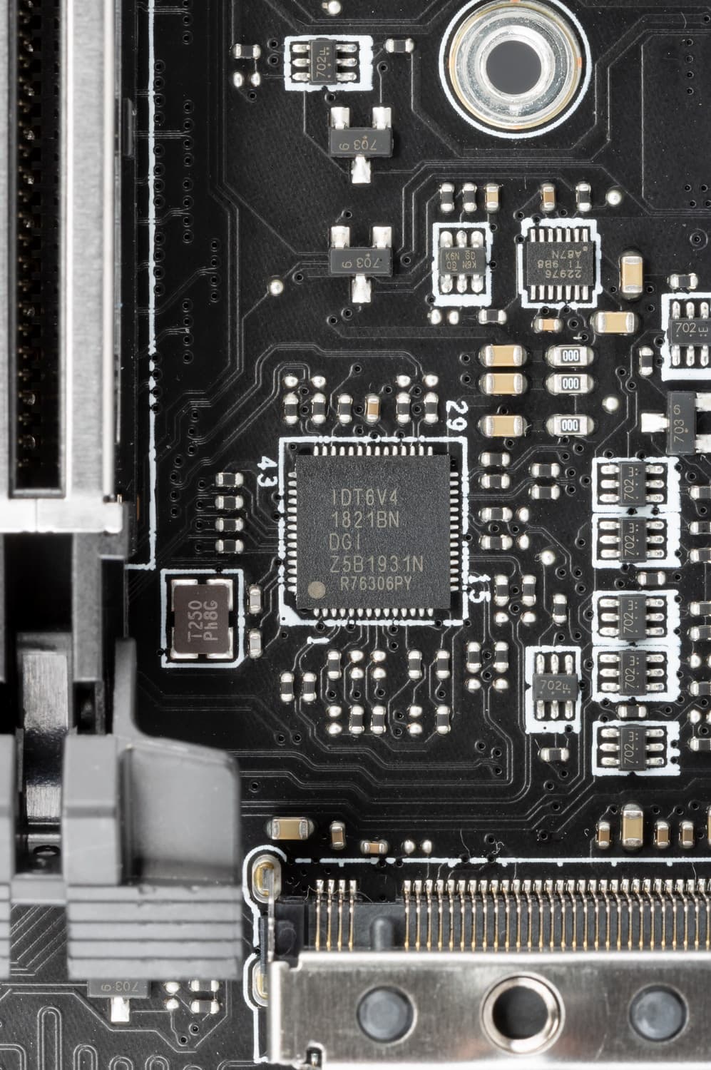 Для поддержания стабильных частот на шине PCIe (и для нужд оверклокеров) имеется внешний тактовый генератор.