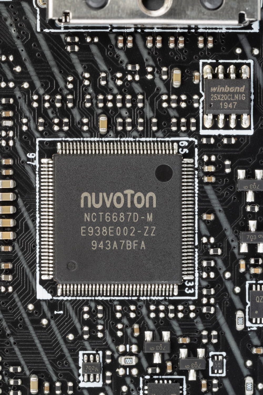 Контролем за работой всех гнезд СО занимается Nuvoton NCT6687D (осуществляющий получение информации с датчиков (мониторинг, а также Multi I/O).
