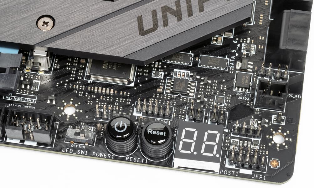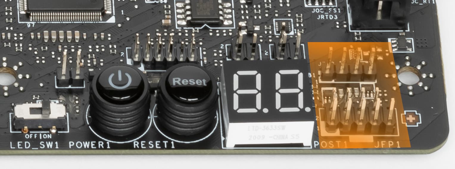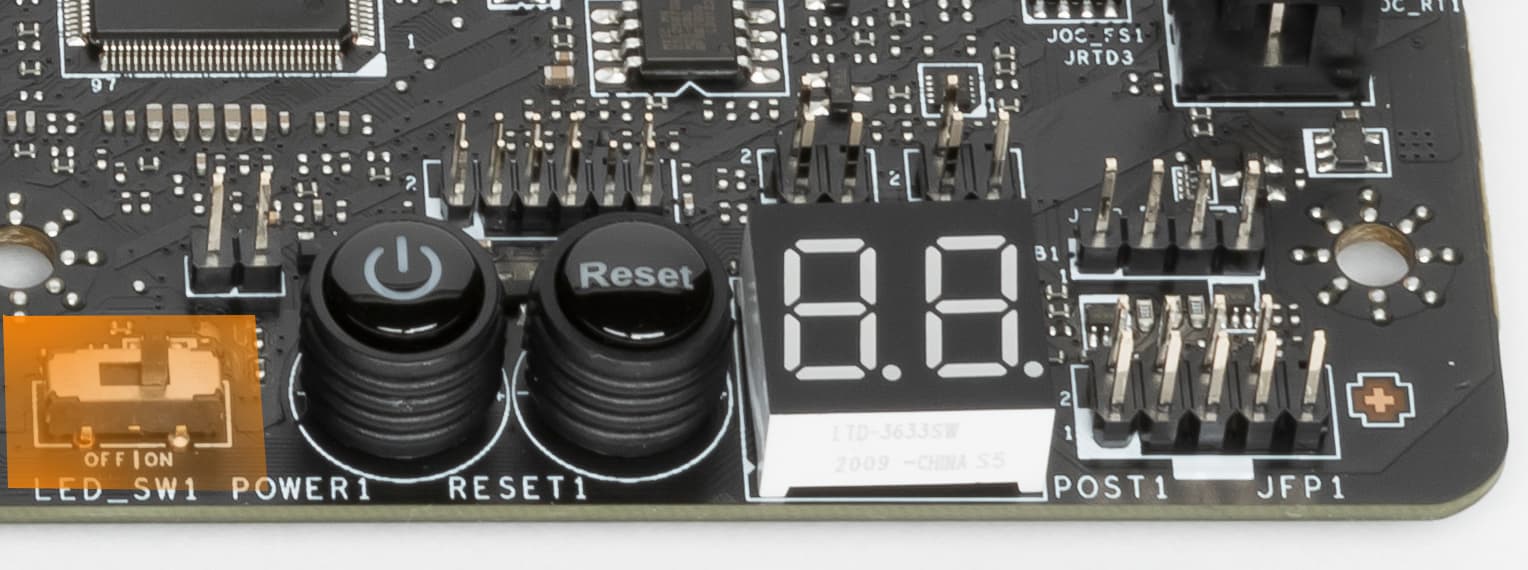 На фото выше еще видно табло POST-кодов (или Debug-кодов), извещающее о текущем состоянии платы в процессе запуска и работы.