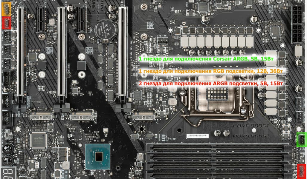 Что касается поддержки световых функций, реализованных в устройствах Corsair, то для их синхронизации с материнской платой MSI есть особый разъем.