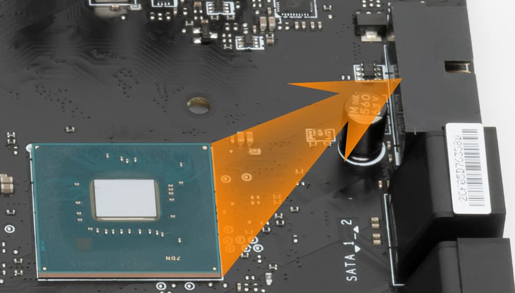 Материнская плата оснащена средствами связи неплохо. Имеется скоростной Ethernet-контроллер RTL8125B от Realtek, способный работать на скоростях до 2,5 Гбит/с.
