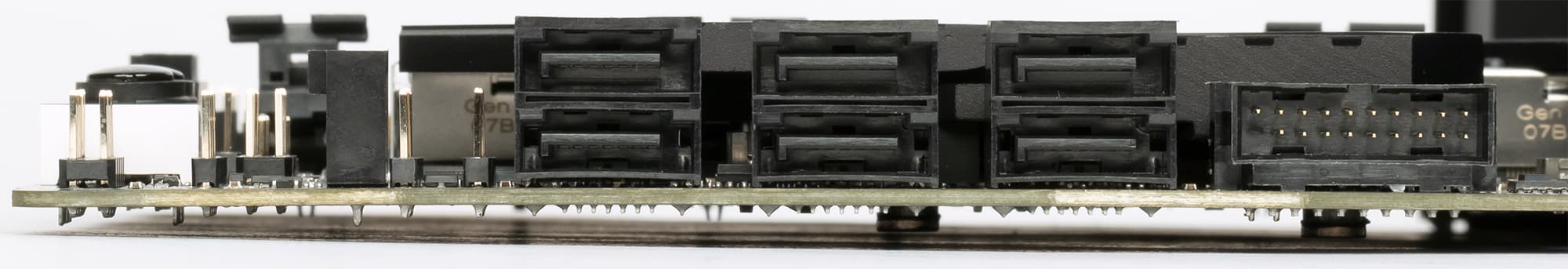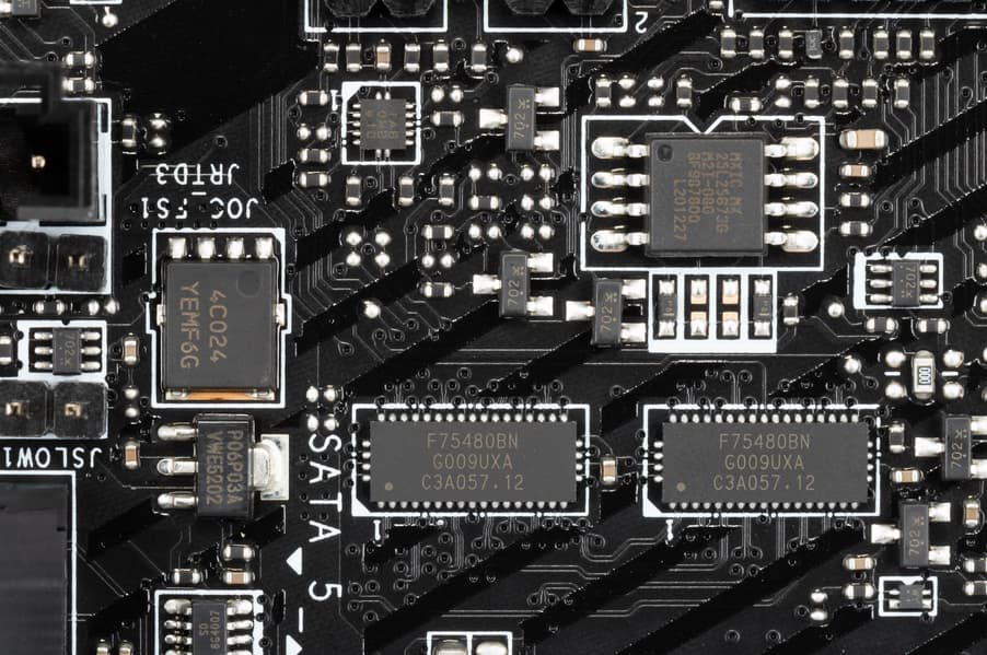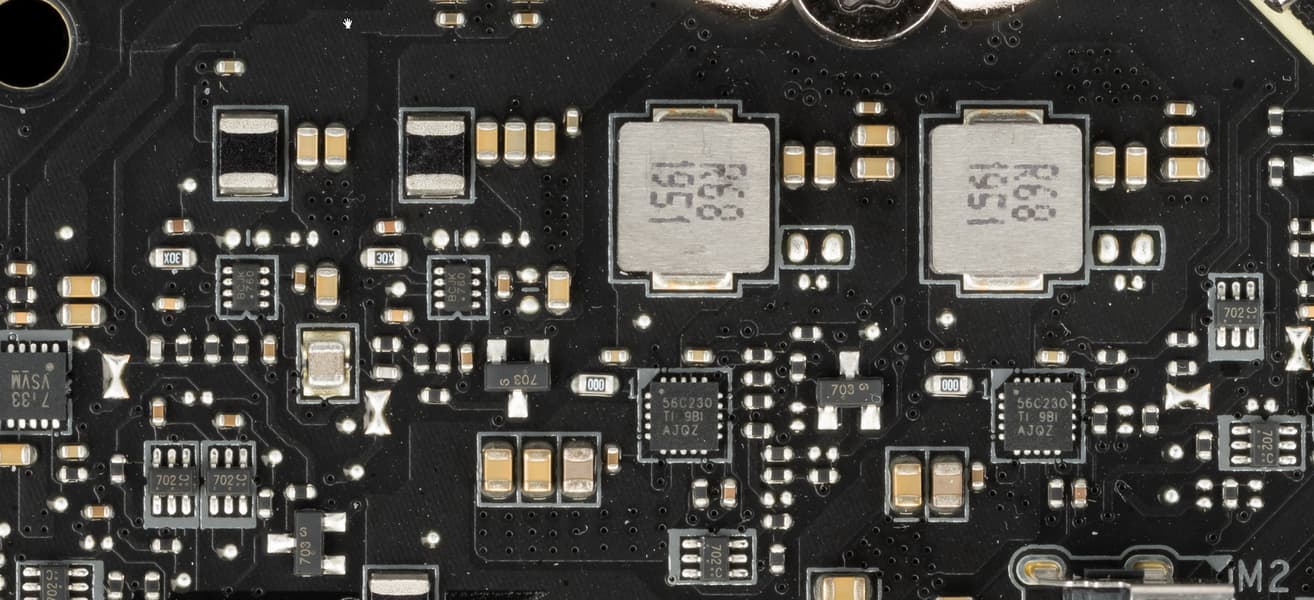 Напомню, что некоторые порты SATA делят ресурсы с портами M.2, поэтому имеются мультиплексоры F75480BN от TE Connectivity Ltd.