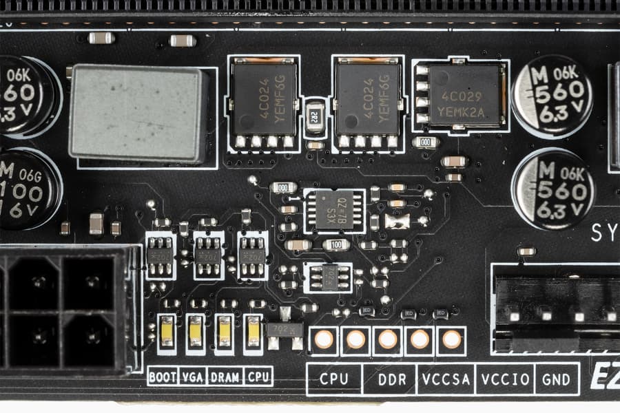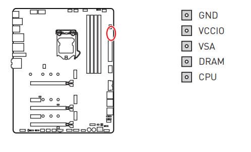 Также есть точки измерения вольтажа на разных блоках матплаты.