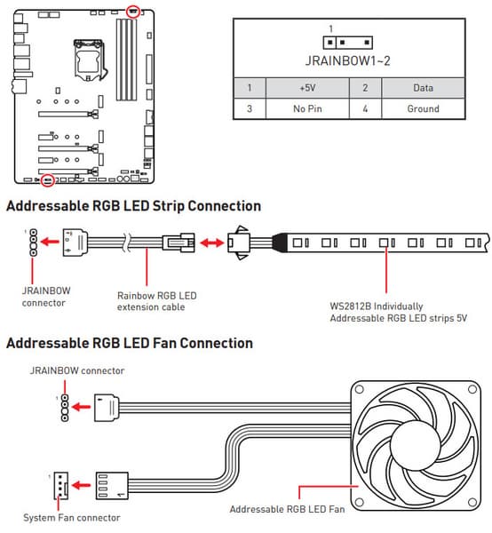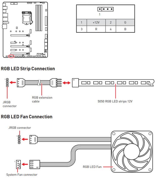 Схемы подключения стандартны для всех материнских плат, поддерживающих подсветку: