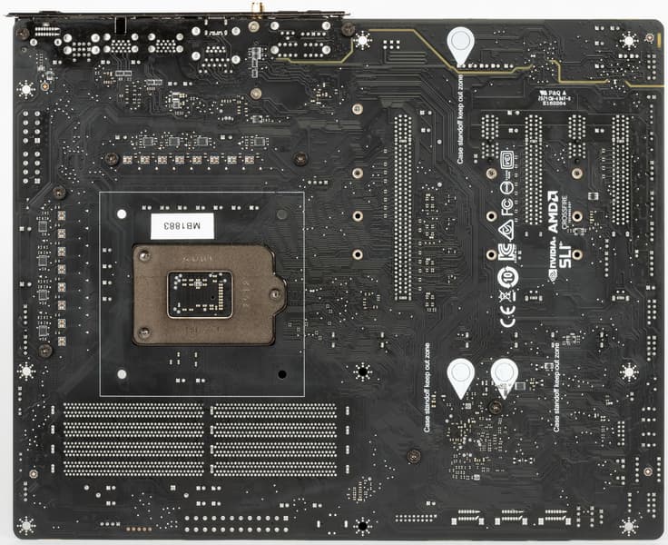 Форм-фактор ATX имеет размеры до 305×244 мм, а E-ATX — до 305×330 мм. Материнская плата MSI MEG Z490 Unify имеет размеры 305×244 мм, поэтому выполнена в форм-факторе ATX, и на ней имеются 9 монтажных отверстий для установки в корпус. Печатная плата имеет 6 слоев.