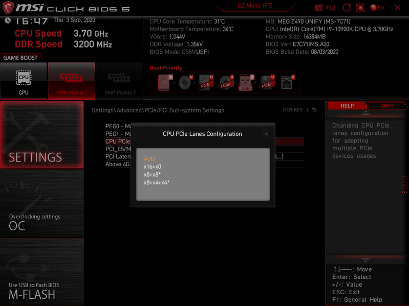 Всего на плате есть 5 слотов PCIe: три PCIe x16 (для видеокарт или других устройств) и два «коротких» PCIe x1. Если про первые два PCIe x16 я выше уже рассказал (они подключены к CPU), то третий PCIe x16_3 (на деле он имеет всего 4 линии PCIe) подключен к Z490 и делит ресурсы с портом M.2_3.
