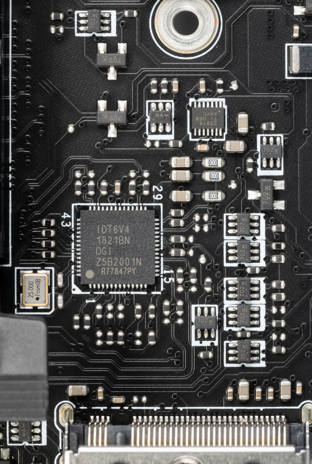 Для поддержания стабильных частот на шине PCIe (и для нужд оверклокеров) имеется внешний тактовый генератор.