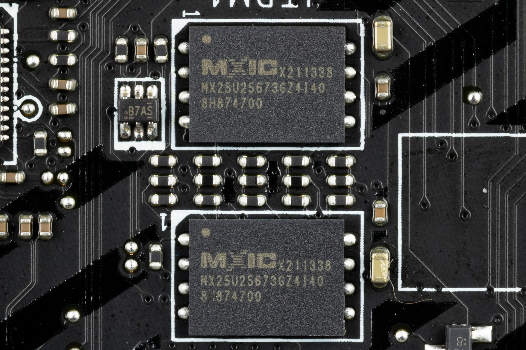Каждый канал фазы имеет суперферритовый дроссель и RAA 22010540 MOSFET от Renesas на 105 А для VCore и встроенного графического ядра и MP87992 от Monolithic Power Systems для VCCIO на 70А.