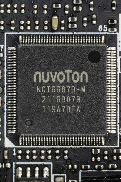 Материнская плата оснащена средствами связи отлично. Имеется скоростной Ethernet-контроллер Intel I225-V, способный работать по стандарту 2,5 Гбит/с.