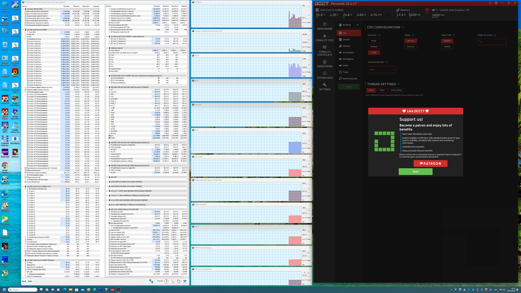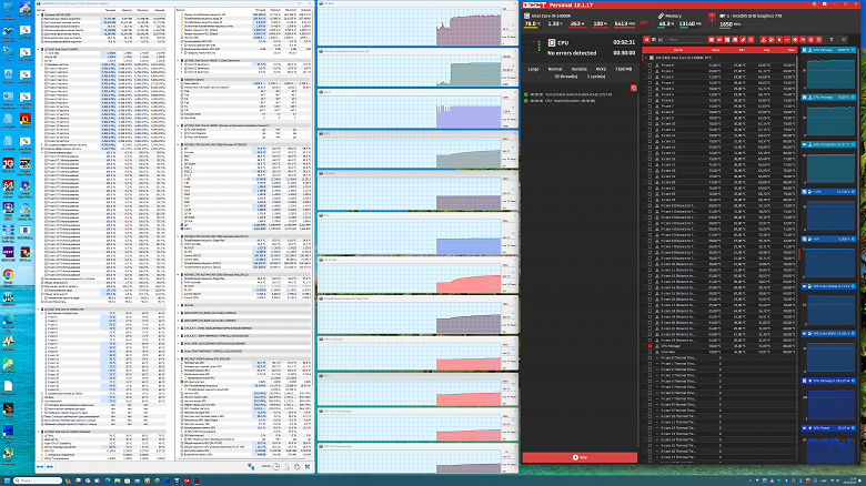 Однако именно до запуска стресс-теста. После чего программа OCCT закрылась. Но падения системы уже не было. В общем, даже мимолетные установки выше 6 ГГц по ядрам могут рушить стабильность. Да, при установке уже 6,0 ГГц по подобному пресету – стабильность на высоте, однако при запуске стресс-теста все частоты вернулись .. к тем, что были в начале: 5,7/4,4 ГГц. Как только нагрузка по ядрам ниже 40% в среднем – тогда 6 ГГц проскакивают еще. А выше – уже переход на 5,7 ГГц и все.