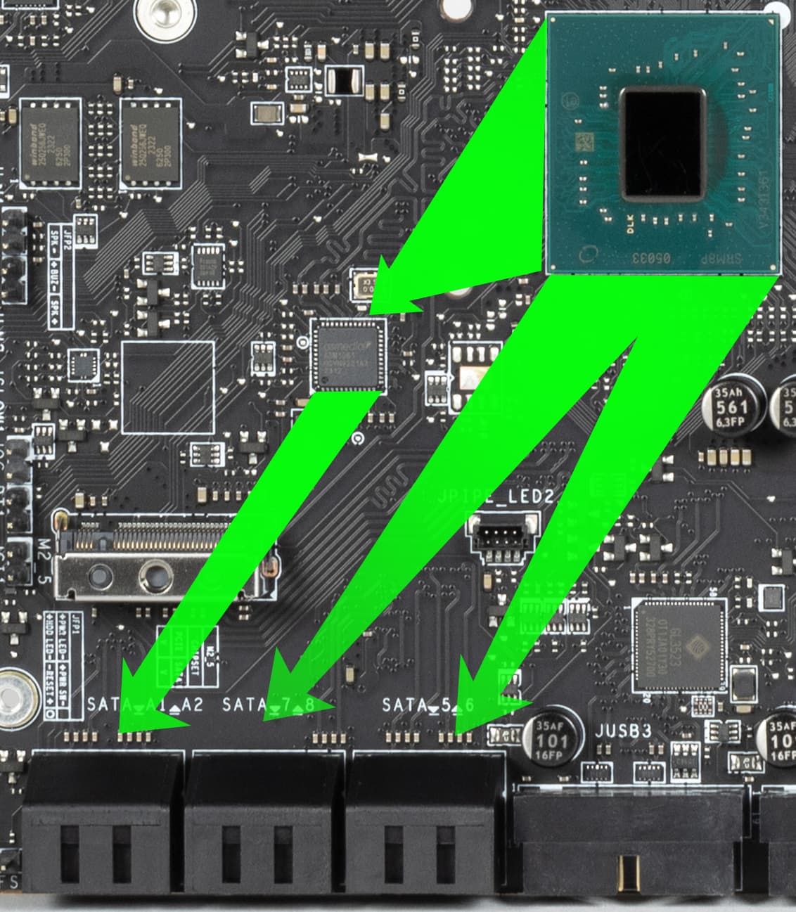 - Порты SATA_5/6/8 (3 линии PCIe 3.0);