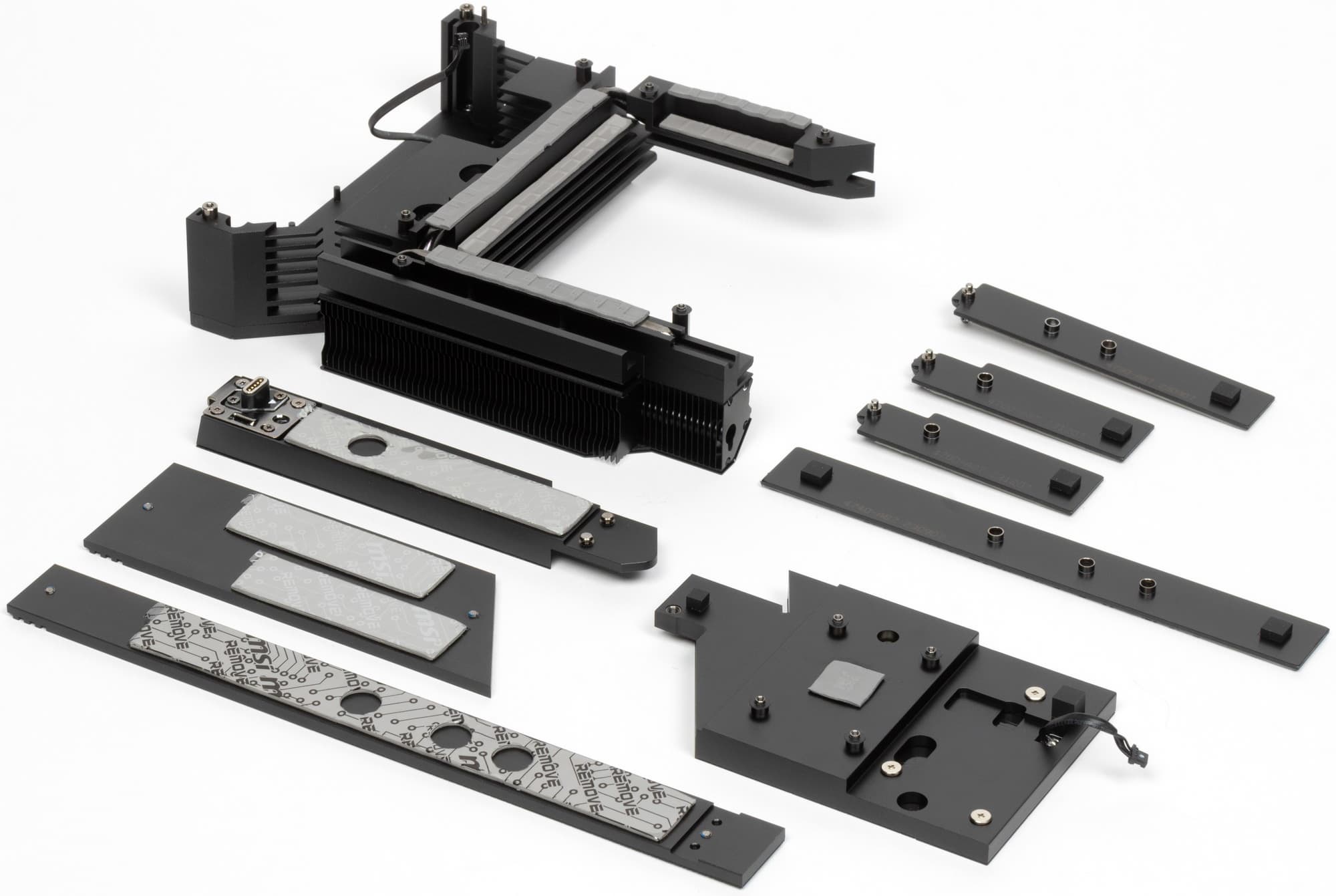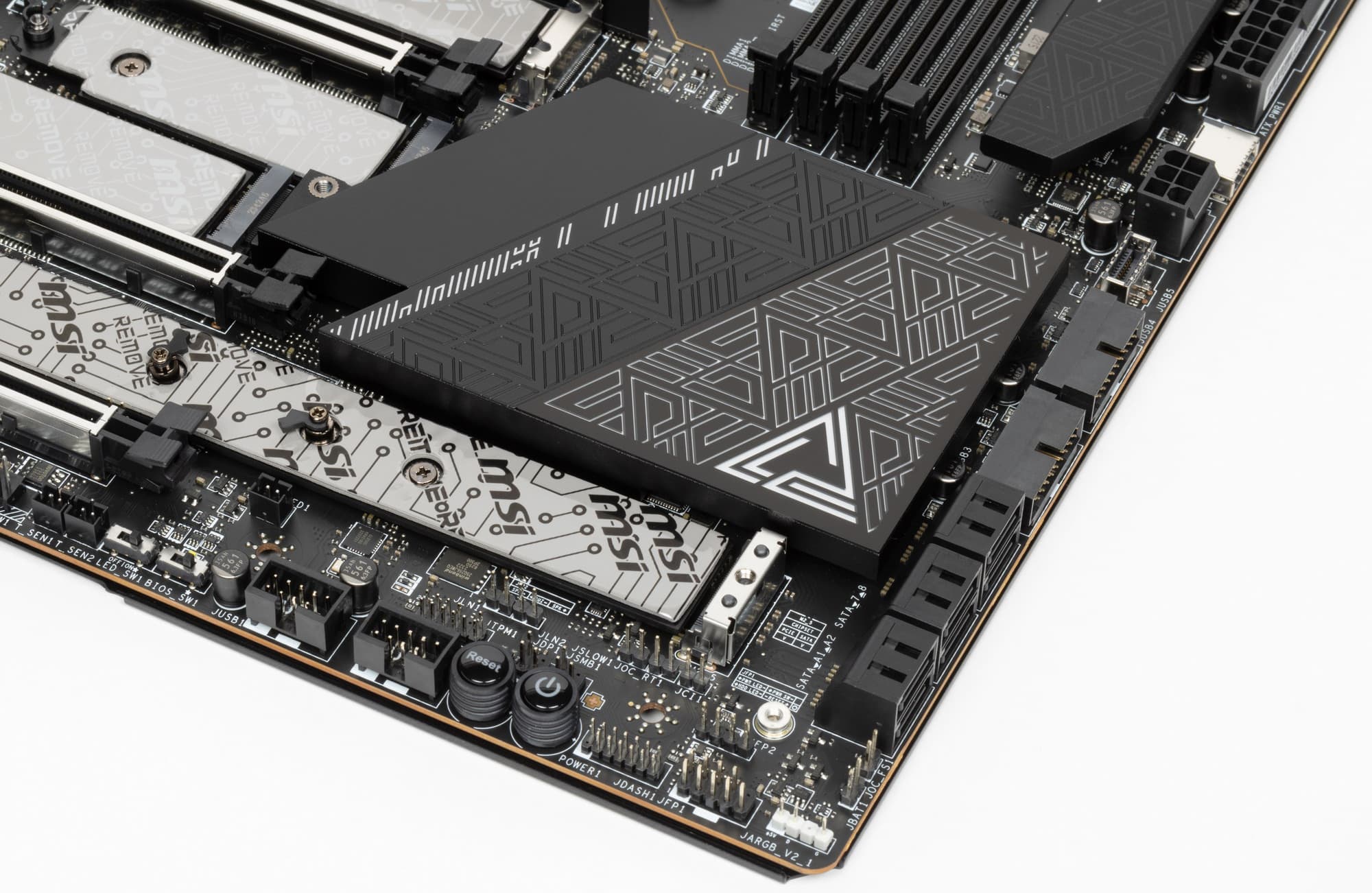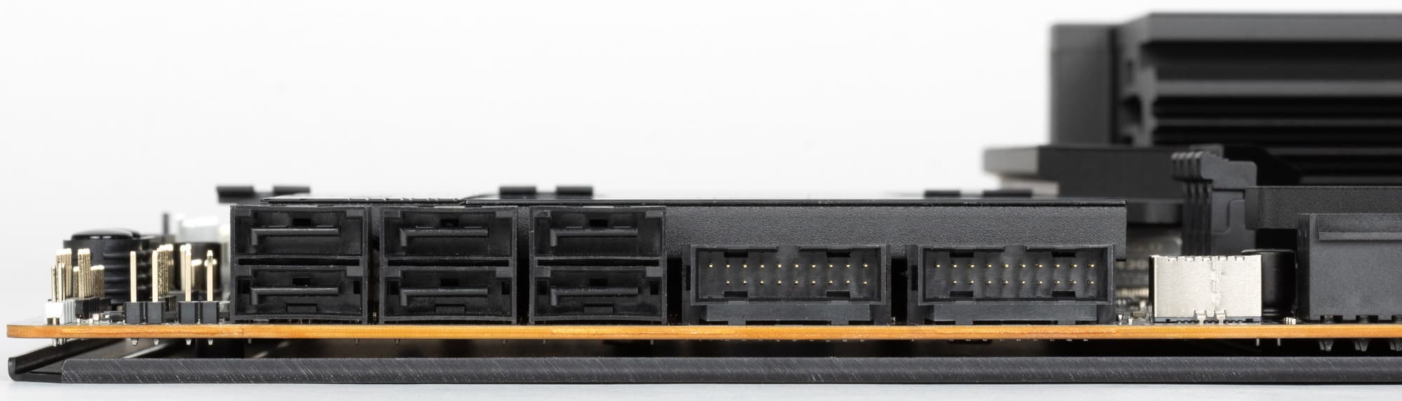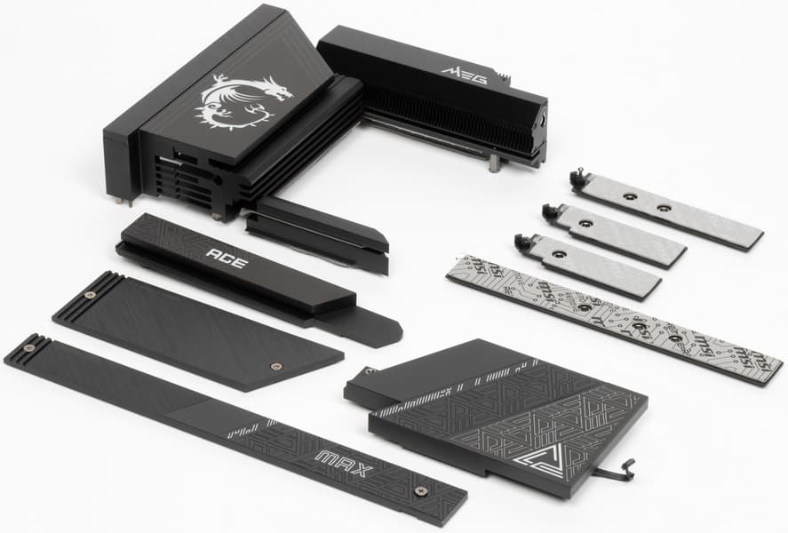 Все M.2 слоты имеют радиаторы. Верхний M.2_1 обладает отдельным радиатором, когда как остальные слоты M.2 имеют общие (попарные) радиаторы.