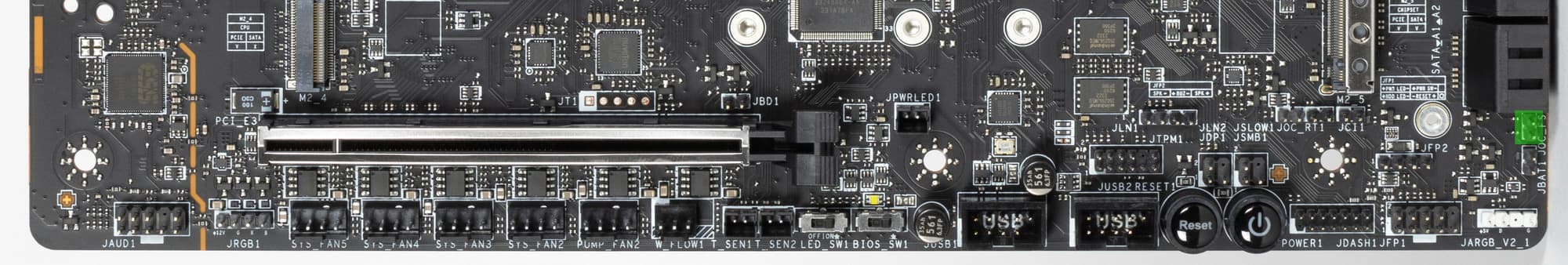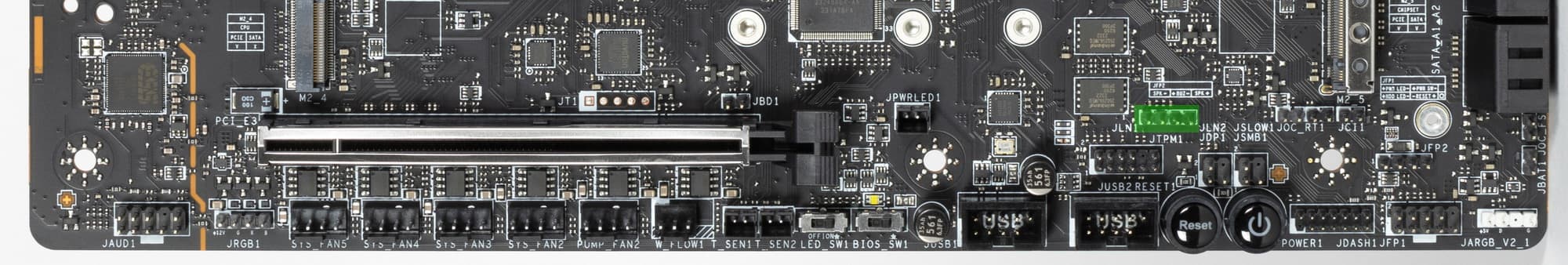 - Переключатель: или слот M.2_5 (4 линии PCIe 4.0), или порт SATA_7: максимум 4 линии PCIe 4.0;
