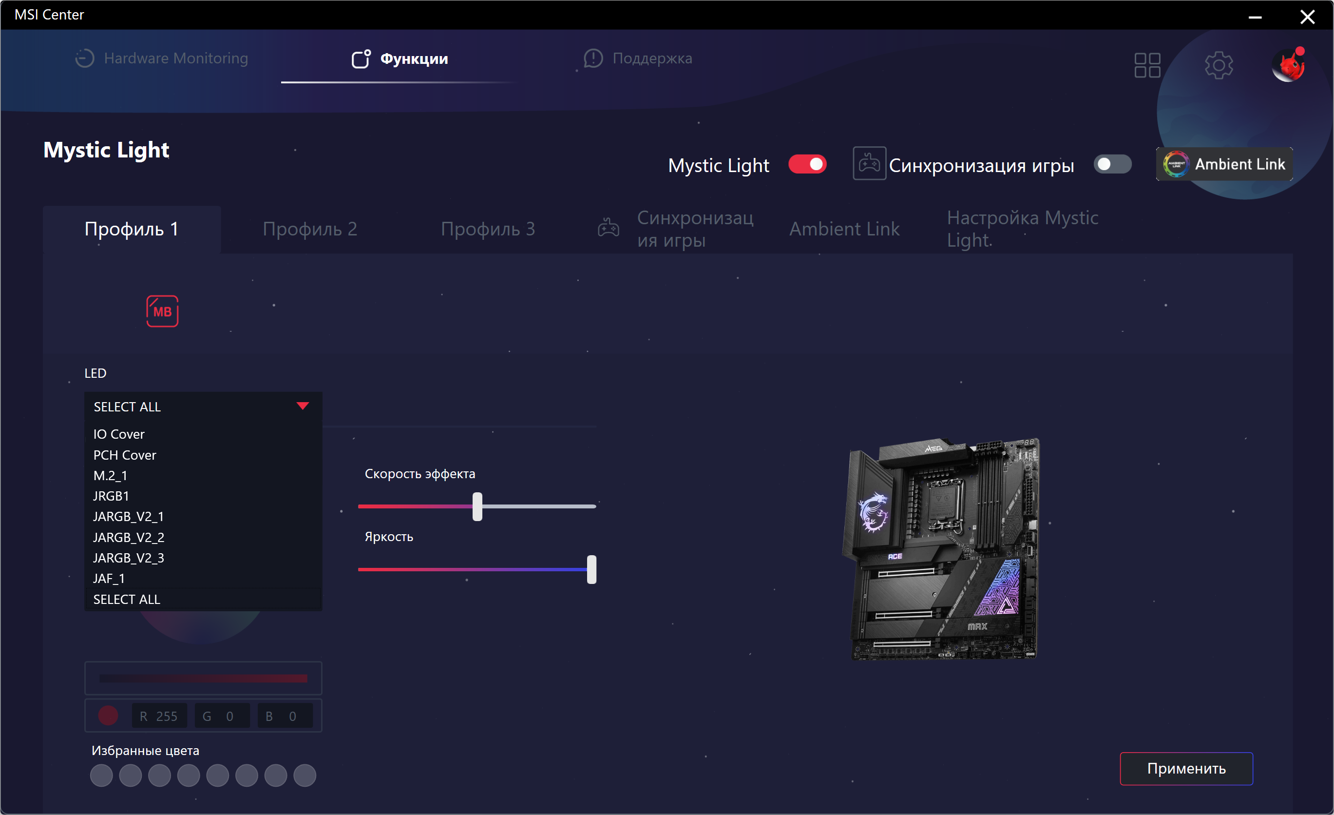 Радиатор VRM, идущий вдоль заднего блока портов, имеет кожух, прикрывающий тот самый блок, оснащенный подсветкой.