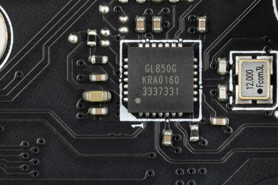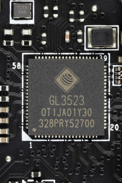 - 4 порта USB 3.2 Gen1: все реализованы через контроллер Genesys Logic GL3523 (на него потрачена 1 линия USB 2.0 от Z790) и представлены 2 внутренними разъемами на материнской плате (каждый на 2 порта);