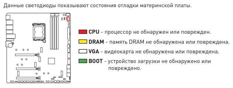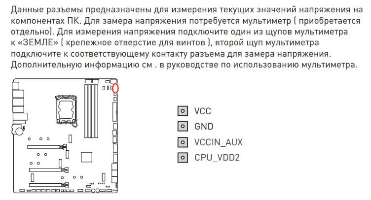 | Прочие внутренние элементы | 24-контактный разъем питания ATX 2 8-контактный разъем питания EPS12V 1 6-контактный разъем питания PCIe 1 слот M.2 (E-key), занят адаптером беспроводных сетей 1 слот PCIe x4, занят адаптером Thunderbolt4 2 разъема для подключения портов USB 3.2 Gen2x2 Type-C 2 разъема для подключения 4 портов USB 3.2 Gen1 2 разъема для подключения 4 портов USB 2.0 10 разъемов для подключения 4-контактных вентиляторов и помп ЖСО 1 разъем для подключения неадресуемой RGB-ленты 3 разъема для подключения адресуемой ARGB-ленты 1 разъем аудио для передней панели корпуса 1 переключатель для отключения подсветки LED_SW1 1 переключатель версий BIOS BIOS_SW1 1 разъем для подключения контроллера панели настроек JDASH1 1 разъем для подключения систем безопасности TPM 2 разъема для включения режима работы LN2 1 разъем для включения режима медленной загрузки JSLOW1 1 разъем для подключения кнопки повторных загрузок JOC_RT1 1 разъем для подключения режима безопасной загрузки JOC_FS1 2 разъема для термодатчикa 1 разъем для отслеживания скорости потока жидкости помп СВО W_FLOW 2 разъема для подключения управления с передней панели корпуса 1 кнопка включения питания Power 1 кнопка перезагрузки Reset |