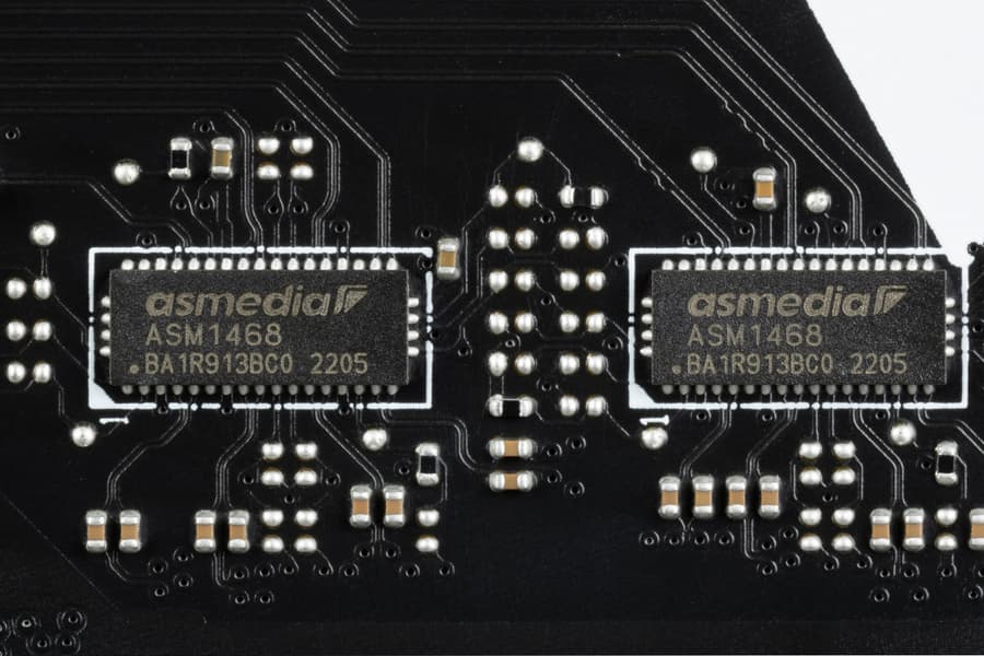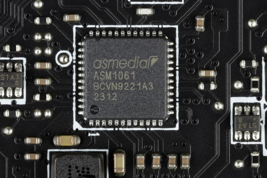 А еще два порта SATA (промаркированные как A1, A2) реализованы через хаб ASM1061 от ASMedia (на него ушла 1 линия PCIe от Z790), они RAID не поддерживают.