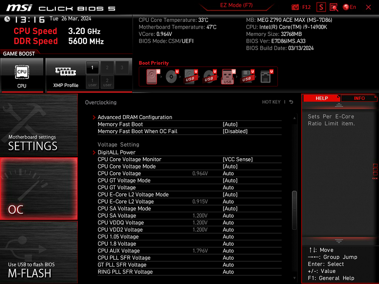 Плата MSI MEG Z790 Ace Max поддерживает процессоры Intel Core 12/13/14-го поколений, выполненные под разъем (сокет) LGA1700.