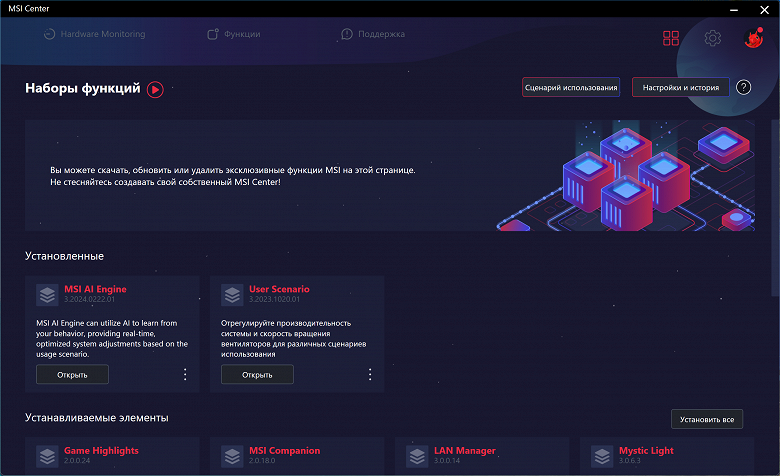 Как и любая модель из серии MEG, данная плата предлагает широкие возможности для любителей разгона в виде аппаратных «фишек», а также множество настроек в BIOS Setup и фирменных утилитах — лишь бы кулер справлялся.