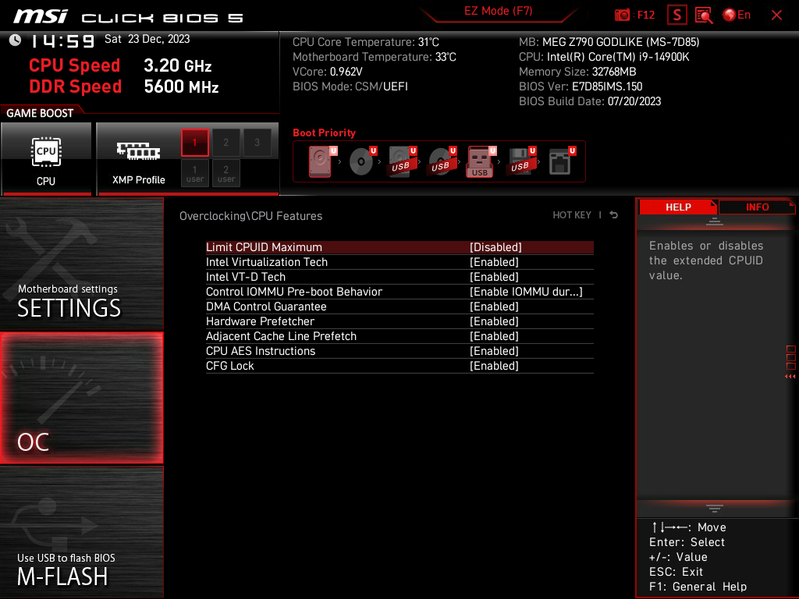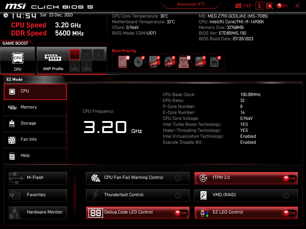 Еще раз надо напомнить, что MSI MEG Z790 Godlike поддерживает процессоры Intel Core 12/13/14-го поколений, выполненные под разъем (сокет) LGA1700.