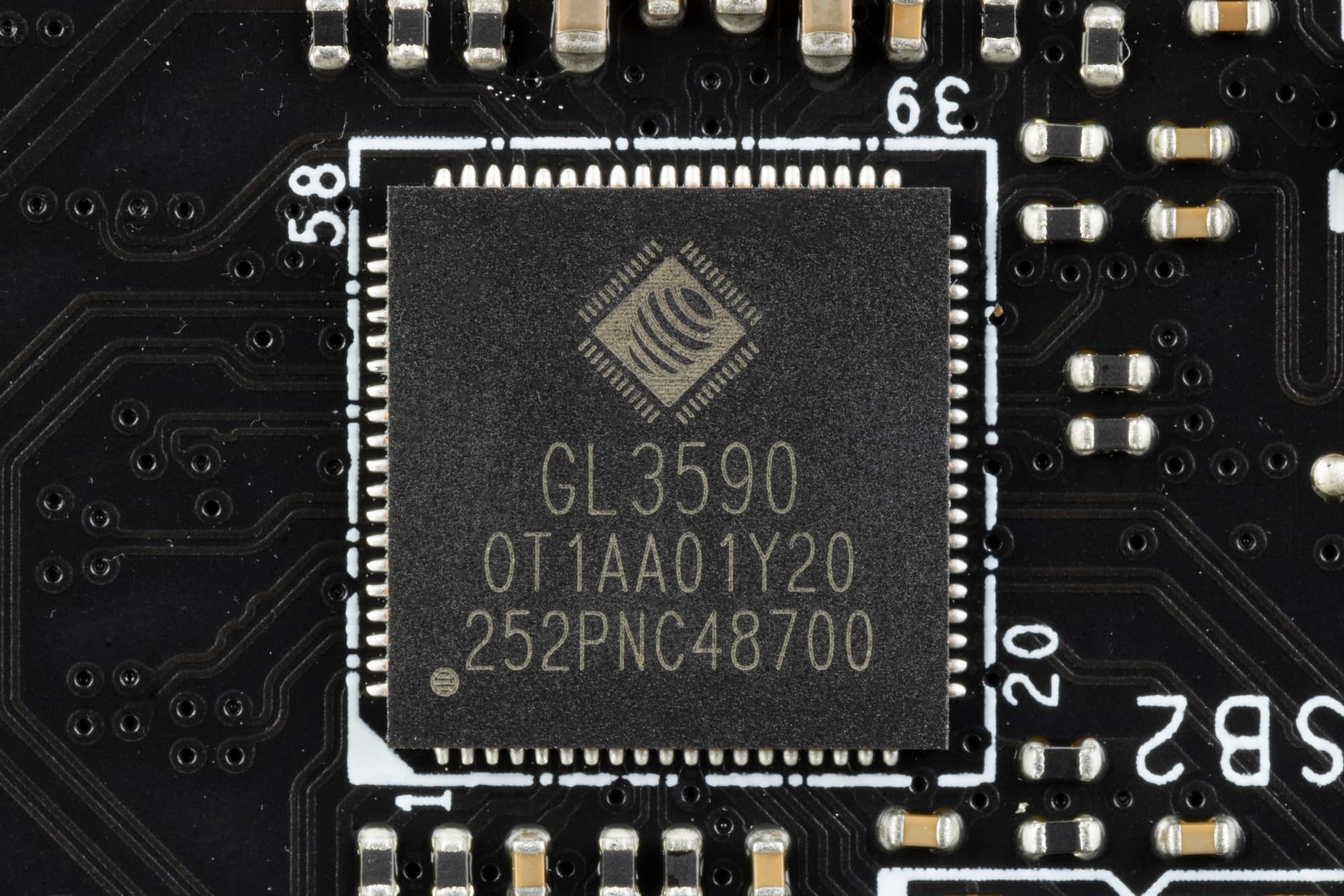 - Genesys Logic GL3590 (4 USB 3.2 Gen2 через 4 разъема Type-A на задней панели) (1 линия USB 2.0);
