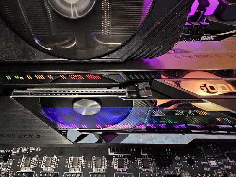 Особо отмечу, что слот для SSD-накопителей M.2_4 также подключен к CPU, получает PCIe 5.0, но делит ресурсы со слотом PCIe x16_2: или тот, или другой.