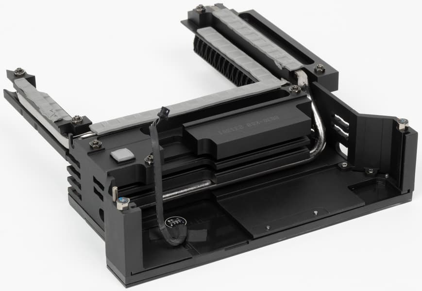 Следует особо отметить новый способ крепления радиаторов на слотах M.2 с помощью пружинных замков и вставных запоров (без винтов). Когда нажав на замок, радиатор легко поднимается и вынимается из запора.