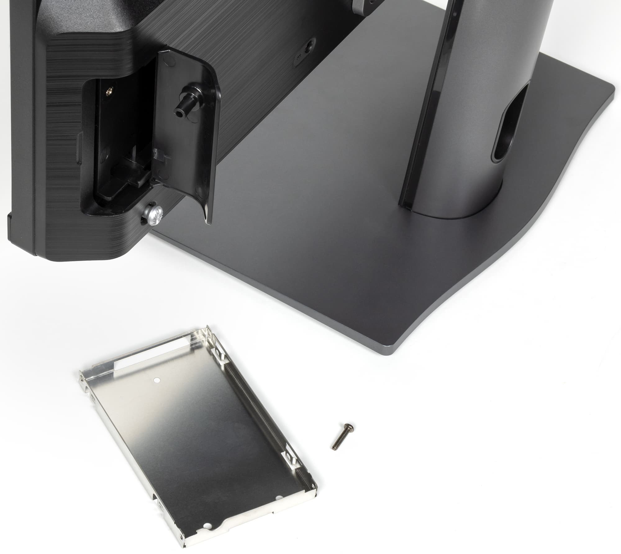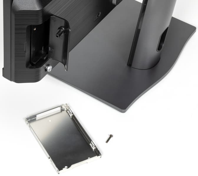 А вот за конструкцию отсека для дополнительного 2,5″ SATA-накопителя (SSD или жесткого диска) мы, пользуясь случаем, хотим похвалить компанию еще раз, поскольку реализация действительно лучшая из возможных. И не сказать чтоб маловостребованная: расширение дискового пространства всегда было самым частым методом модернизации ПК, а сейчас и подавно. Также можно поменять память и «системный» NVMe SSD, но для этого компьютер уже придется разбирать, как и все остальные моноблоки. А вот просто добавить дополнительный SSD или жесткий диск в случае моноблока MSI можно даже в домашних условиях. И это правильно.