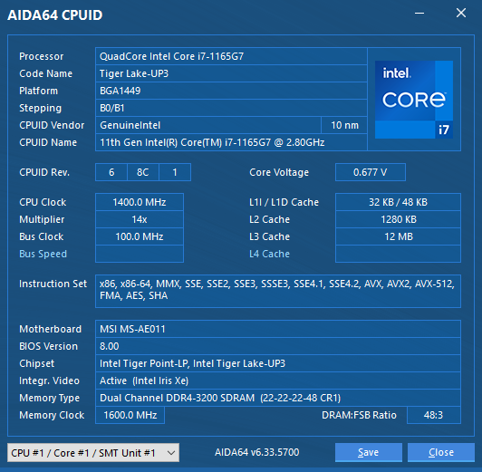 В Modern AM241P 11M используется ноутбучная платформа Intel с процессорами одиннадцатого поколения, что отображено в названии: 11М. Само по себе это существенное изменение архитектуры, причем первое за долгие годы и большее, нежели в настольных Rocket Lake, где пришлось ограничиться старым техпроцессом. Tiger Lake используют новейший техпроцесс 10 нм SuperFin. Но это не единственное улучшение платформы.