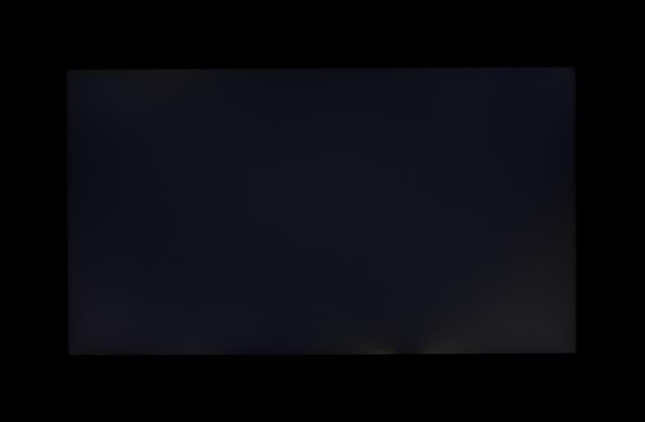 Если отступить от краев, то равномерность всех трех параметров очень хорошая. Контрастность по современным меркам для данного типа матриц типичная. Фотография ниже дает представление о распределении яркости черного поля по площади экрана: