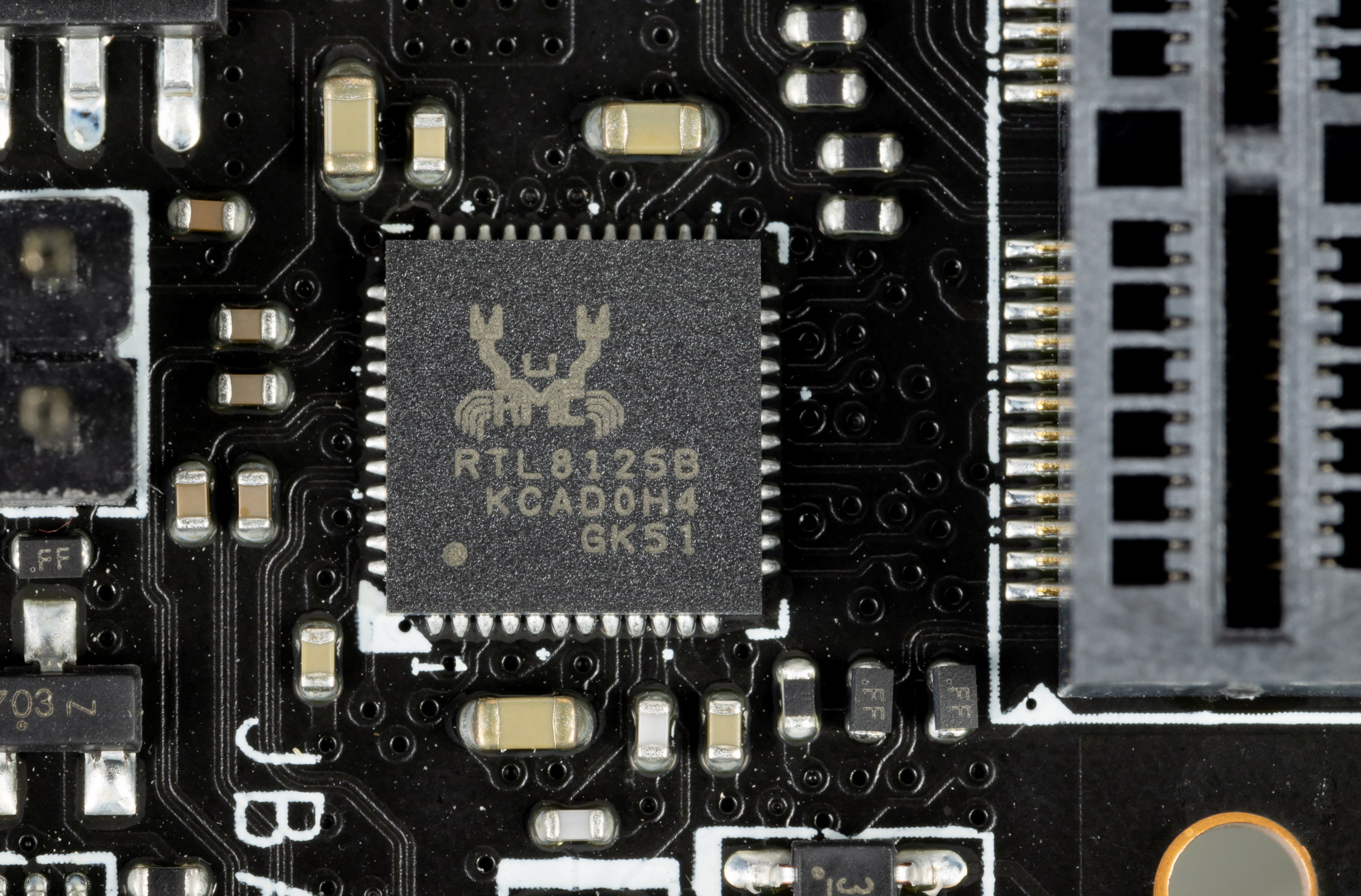 Материнская плата оснащена средствами связи очень хорошо. Имеется скоростной Ethernet-контроллер Realtek RTL8125B, способный работать по стандарту 2,5 Гбит/с.