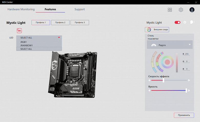 MSI MPG B560I Gaming Edge WiFi — отличный вариант материнской платы для системного блока очень небольших размеров с поддержкой современных процессоров Intel 11-го поколения.