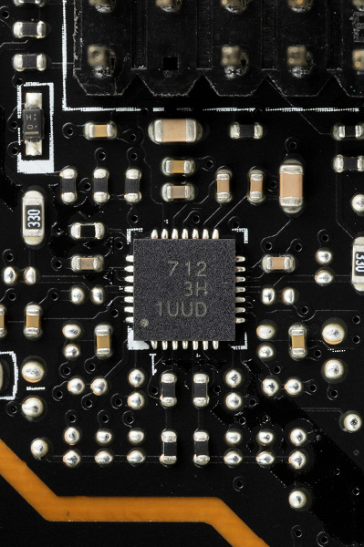 Для поддержания стабильных частот на шине PCIe 5.0 имеются усилители сигнала от Texas Instruments.